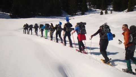 Départ pour une randonnée en raquettes sur 2 jours au cours de laquelle nous aborderons le programme suivant.